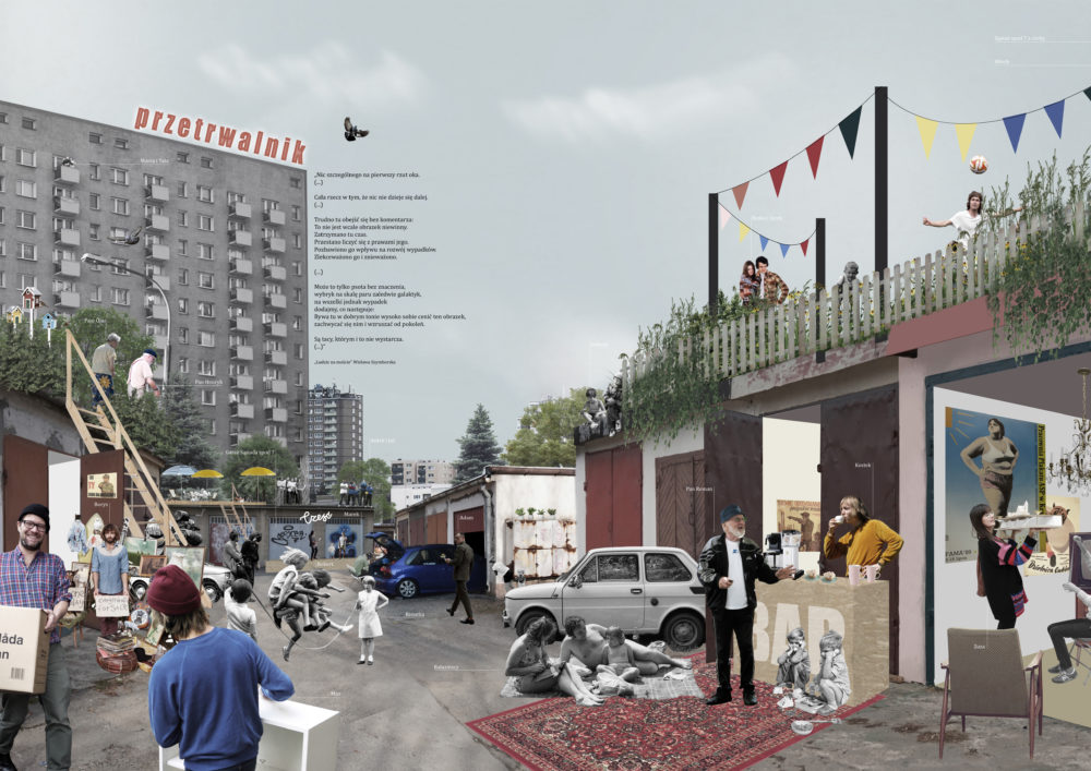 Przetrwalnik – forma spoczynkowa umożliwiająca organizmom przetrwanie niekorzystnych warunków. Takim przetrwalnikiem jest teraz garaż. Zatrzymał się w nim czas, zahibernowała przestrzeń, która czeka na przebudzenie. Mimo że bohaterowie historii są fikcyjni, scenariusze są prawdziwe. Pokazują problemy, które możemy spróbować rozwiązać korzystając właśnie z tej przestrzeni. Stwórzmy uniwersalny katalog odpowiedzi, odpowiedzi 5x3x3m, które zmienią wizerunek garaży. Kiedyś pewnie wszystkie znikną i zastąpią je nowe budynki, ale teraz niech budzą się z zimowego snu i przeżyją jeszcze kilka wiosen w nowej odsłonie. Nie przegapmy naszej szansy.